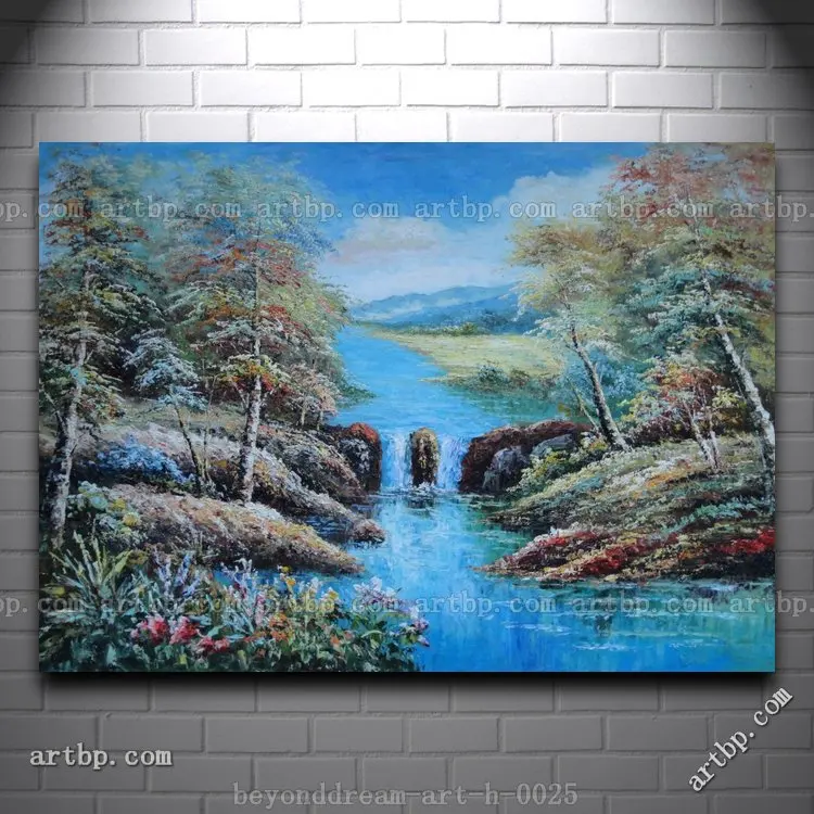 Petite Cascade En Bleu Eau Eau Fleurs Arbres Peinture A L Huile