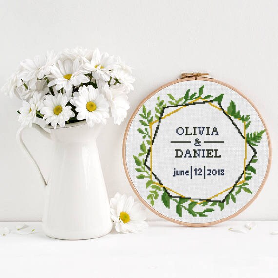 Geometric Wedding Record Counted Cross Stitch Pattern Floral Etsy