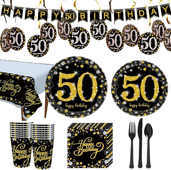 Amazon Com Trgowaul 50th Birthday Party Supplies Black And Gold